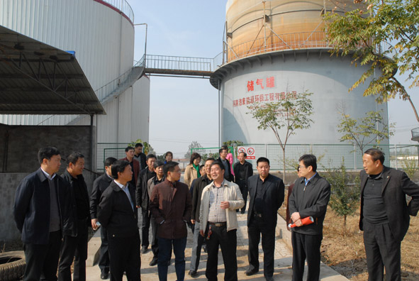 考察團(tuán)一行,重點(diǎn)了解公司投資475萬(wàn)元于2014年建成的2000立方的大型沼氣集中供氣工程,該工程日產(chǎn)沼氣達(dá)1000立方,主要用于公司內(nèi)的生產(chǎn)、生活用氣和平樂(lè)鎮(zhèn)翟泉村300戶居民的生活使用。
